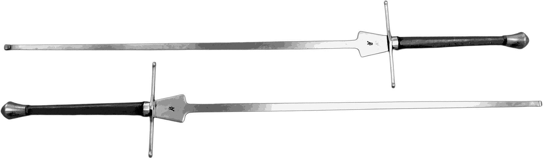 En résumé, avant le XIVe siècle, l'épée était principalement une épée de taille. À partir de la fin du 13e siècle, on peut distinguer trois types d'épées : l'épée à une main, l'épée à une main et demie (bâtarde) et la feder (épée plume), utilisée comme épée d'entraînement. L'épée à deux mains n'est apparue sur les champs de bataille que très tard, au XVIe siècle.