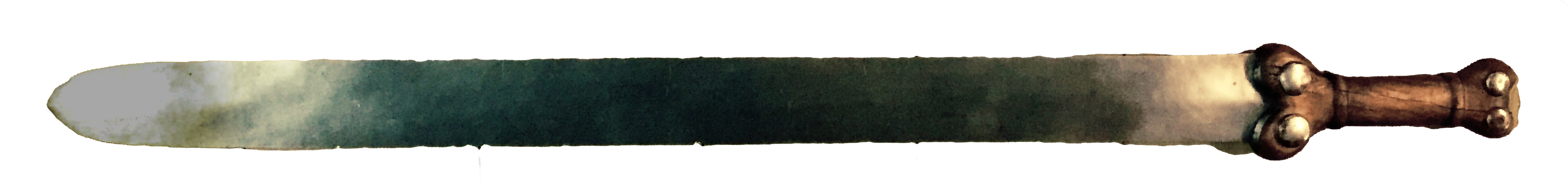 Au Ve siècle avant J.-C., l'épée en fer apparaît chez les Celtes, probablement inspirée par les épées en bronze. Nous parlons ici des lames d’un acier doux avec une teneur 0.2 à 0,4% de carbone. Il s'agissait d'une arme légère, ne pesant que 800 g et très fragile, destinée au combat individuel. L'arme avait une lame plate à deux tranchants parallèles, mesurant entre 80 et 95 cm de long et 4 à 6 cm de large. La lame avait une section ovale sans gouttière et ne dépassait pas 5 mm d'épaisseur en son centre. La pointe était généralement large ou arrondie. Elle n'avait pas encore de quillon ni de pommeau.