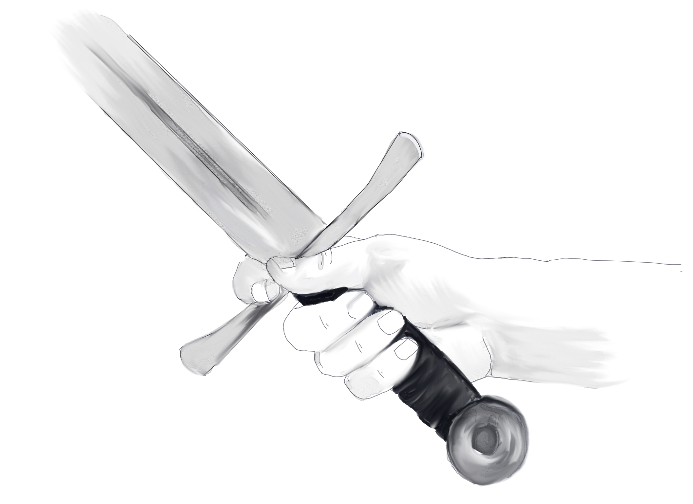 L’épée bâtarde ou à une main et demie La caractéristique de cette épée est que la poignée est 3 à 5 cm plus longue que celle d'une épée à une main. Les prises pour la main dominante sont les mêmes qu’à l’épée à une main. La deuxième main repose partiellement sur la poignée et le pommeau pendant l'utilisation. Le pommeau est généralement de forme allongée, p.ex. en forme de poire. |
