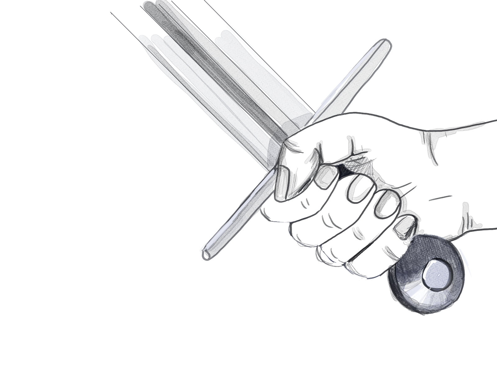Comme nous l'avons déjà mentionné, la plupart des épées étaient des armes de taille, c'est-à-dire qu'elles étaient principalement utilisées pour frapper avec le tranchant. Le coup de taille est un mouvement circulaire. Pour obtenir un résultat efficace, une certaine distance de travail est nécessaire. Pour un effet maximal, la lame doit frapper la cible avec le dernier quart proche de la pointe et les bras doivent être tendus. Cela signifie que les mouvements autour de l'adversaire doivent également être circulaires.