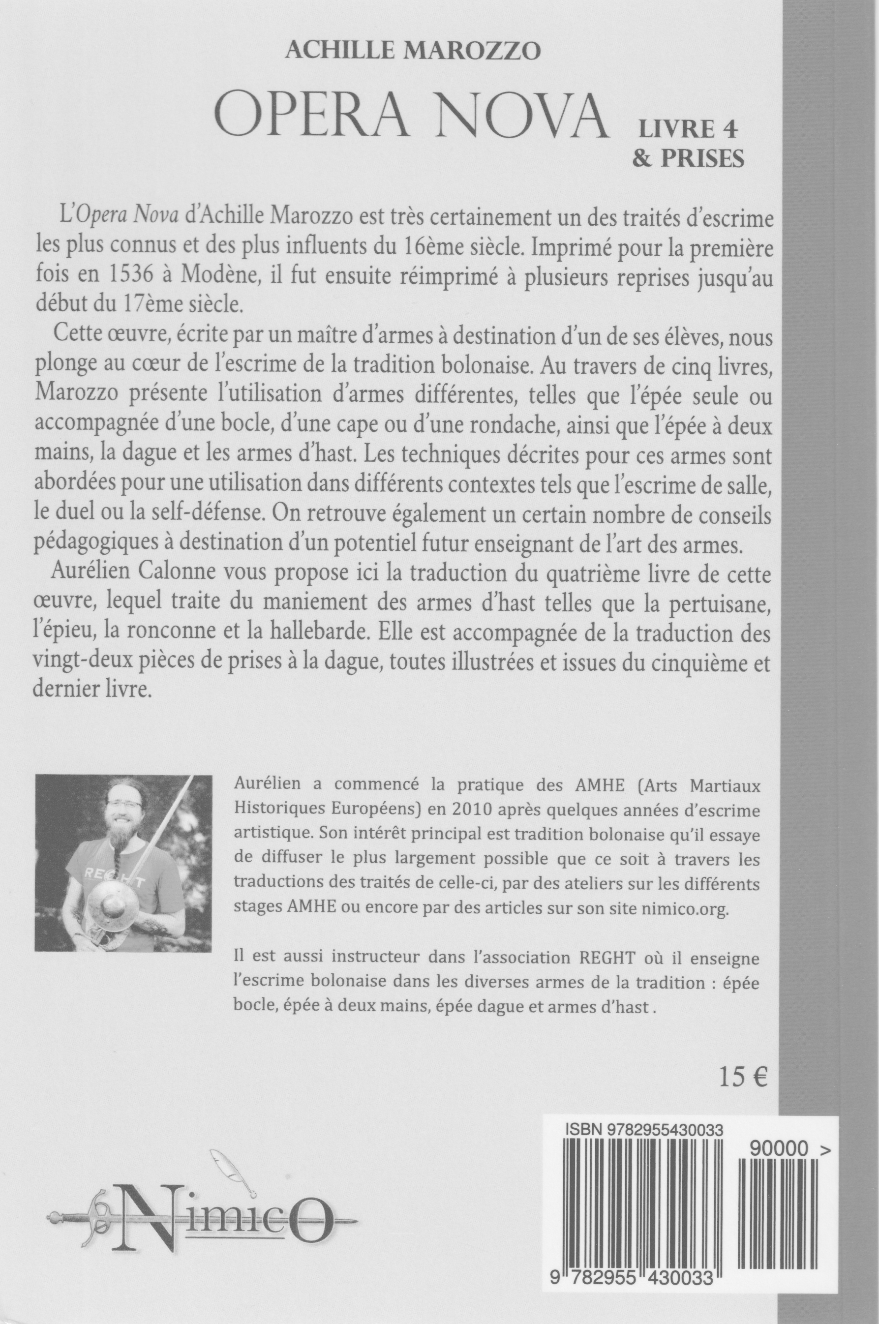 Opera Nova, Achille Marozzo, Transcrit et traduit par Aurélien Calonne, Livre 1 à 4, Nimico 2018